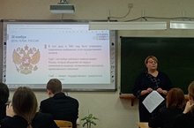 28 ноября 2022 года в лицее классными руководителями было проведено внеурочное занятие на тему «Символы России». Цель занятия: обеспечить формирование у обучающихся устойчивых представлений об истории отечественного герба, показать воспитательное значение отечественной государственной символики, сформировать чувство уважения к государственному гербу Российской Федерации. Формирующиеся ценности: историческая память и преемственность поколений, патриотизм, любовь к Родине. В начале занятия учащимся был показан видеофрагмент символах России, об их истории и их значении. В основной части занятия учащиеся ответили на вопросы по теме занятия в форме интеллектуальной игры «Что? Где? Когда?». В ходе занятия ребята также разделились на группы и в качестве специалистов по геральдике исследовали флаг России. В заключении ребята разгадали филворд по теме внеурочного занятия.