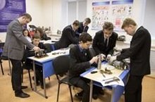 6.10.2017 Республиканское совещание по развитию технического творчества в Республике Татарстан на базе АО «КМПО». На фото демонстрация в действии модели собранных нашими лицеистами собственноручно роботов (запуск роботов)