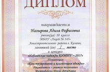 Назырова Адиля - призер заключительного этапа Всероссийской олимпиады школьников по технологии 16.05.2017