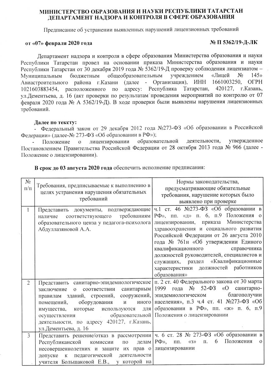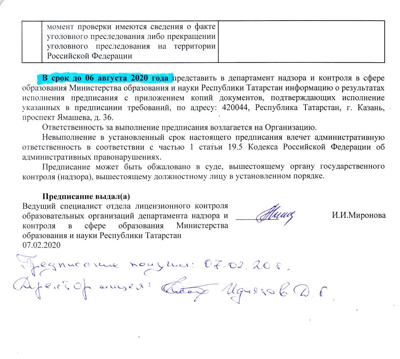 Акт проверки Рособрнадзора от 7 февраля 2020 года