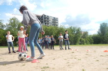 Третий день пришкольного лагеря "Радуга" прошел также увлекательно и насыщенно. В первой половине дня дети играли в футбол, пионербол и баскетбол. После обеда учительфизкультуры Ильяс Маратовичорганизовал с каждым отрядом конкурс "Веселые старты". После предварительной разминки детисроревновались по ведению мяча, забиванию гола и т.д. Самым интересным конкурсом была игра "Змейка", где каждый ученик смог показать свою ловкость, умение вести мяч и забивать гол в ворота