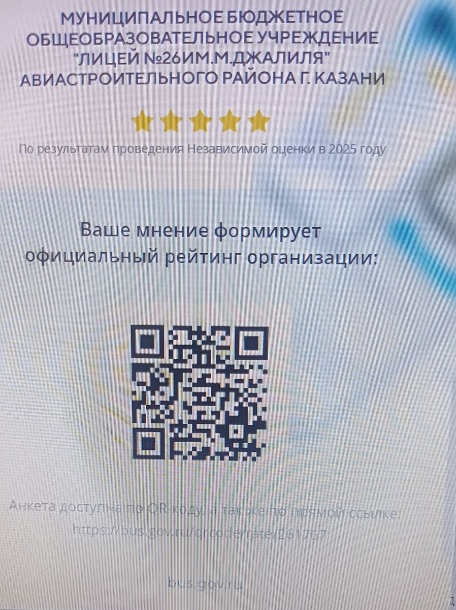 | Короткое название: | МБОУ "Лицей №26 им. Мусы Джалиля" |