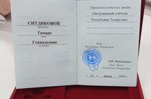 Сегодня заместителю директора по учебной работе Ситдиковой Тамаре Геннадьевне было присвоено почётное звание "Заслуженный учитель Республики Татарстан". Награду вручил Раис Республики Татарстан Минниханов Р. Н.