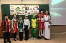 Сегодня ученики 4-ых классов проводили внеклассное мероприятие "Мы друзья родного языка". Были приглашены ученики 1-ых классов. Дети инсценировали стихи Г. Тукая, пели песни о Родине и о Родном языке, показали шуточный танец.