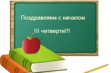 Поздравляем вас с началом новой учебной четверти! Вперед, к знаниям! Вот и закончились зимние каникулы. Новогодние елки, подарки, поздравления. Уважаемые коллеги, родители и ученики! Поздравляем Вас с началом третьей четверти! Желаем коллегам - творческих успехов; родителям - терпения; ученикам - хороших отметок и прочных знаний. Начинается 3 четверть. Мы ждем Вас, отдохнувших и полных решимости окончить эту самую длинную учебную четверть хорошо и отлично!