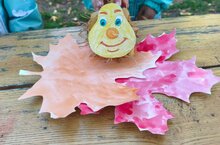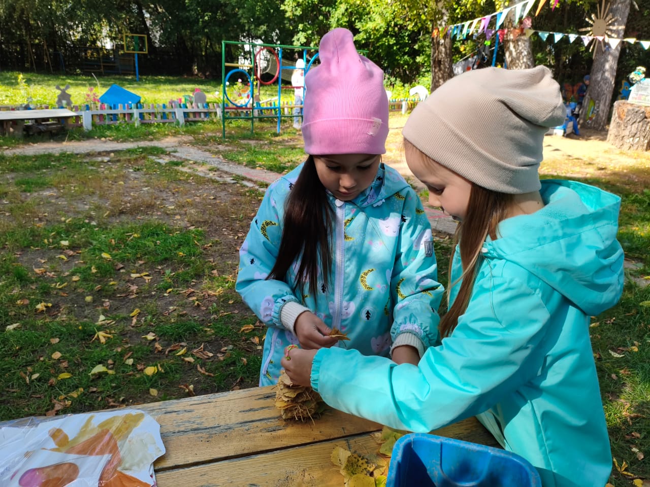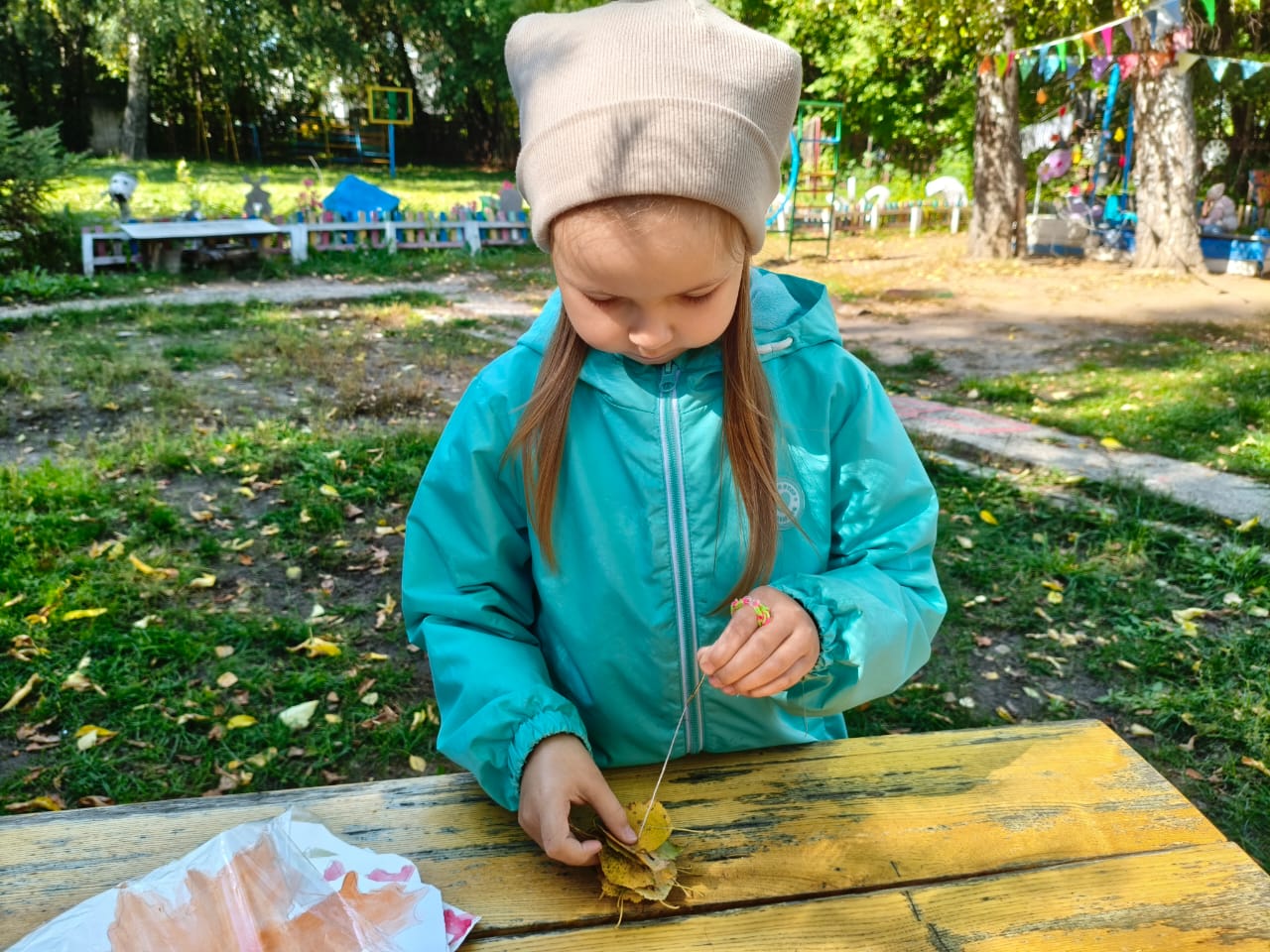 Поделку из осенних листьев в виде забавной гусеницы сделали девочки из подготовительной к школе группы "Сказка". -
