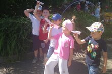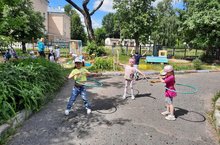 Лето – пора отдыха и веселья! Наши воспитатели совмещают приятное с полезным. Воспитанники группы "Берёзка" не только резвятся, отдыхают и веселятся, а делают это с пользой. Кольцеброс – это динамичная спортивная игра для улицы, суть которой состоит в попадании кольцами в цель. Такая простая, но увлекательная игра создана специально для тренировки меткости и ловкости.