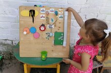 Бизиборд обеспечивает игровую, познавательную, исследовательскую и творческую активность всех воспитанников, экспериментирование с доступными детям материалами. Данное пособие эстетично, мобильно и трансформируемо. Дети с удовольствием играют с развивающей доской самостоятельно не только в группе, но и на прогулке.