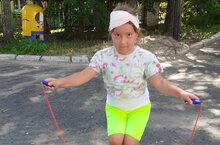 Прыжки через скакалку - это прекрасное средство тренировки сердечно - сосудистой и дыхательной систем, развивающее общую выносливость и координацию движений, форма двигательной активности, доступная всем, в том числе и детям. На скакалке можно заниматься где угодно: в физкультурном зале, коридоре, парке, на улице и т.д. Наши девочки с огромным удовольствием прыгают через скакалку на улице во время прогулки.