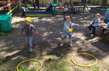 Лето – самая любимая пора всех детей, ведь в теплую погоду можно практически целый день проводить на улице. Одним из важнейших вопросов в работе дошкольного учреждения в летний период является организация досуга детей. Наши дети не скучают на прогулке. Они играют в разные игры, а иногда и соревнуются. А игры-соревнования развивают такие качества, как быстрота, ловкость, выносливость.