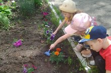С огромным удовольствием наши воспитанники трудятся в цетнике. Они самостоятельно определяют необходимость полива и рыхления почвы. Создание на земельном участке дошкольного учреждения цветника имеет большое воспитательное значение. Дети вместе с воспитателем, выращивая на участке растения, учатся ухаживать за ними, узнают о жизни растений, приучаются к труду и бережному отношению к зеленым насаждениям. Яркие впечатления, полученные в детстве от общения с живой природой, надолго остаются в памяти и служат фундаментом для формирования правильных представлений о природе.