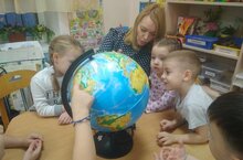 В подготовительной к школе группе "Капитошки" созданы условия для формирования у детей представлений о том, что планета Земля - это огромный шар, большая часть которого, покрыта водой. Дети знают также, что кроме воды есть материк — твердая Земля — суша, где живут люди, животные и т. д. С огромным интересом рассматривают они глобус и находят ту часть земли, на которой находится наша страна и республика.