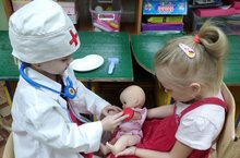 Одной из любимых сюжетно-ролевых игр в детском саду является сюжетно-ролевая игра "Больница". Играть в эту игру дети начинают с раннего возраста. В игре формируются дружеские взаимоотношения, чувство гуманизма, активность, ответственность, дружелюбие. Кроме того, игра способствует закреплению ранее полученных знаний о труде врача.