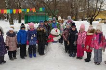Снежное время даёт нашим воспитателям шанс для организации интересных игр. А если снег липкий, то можно слепить снеговика. Вот такого удивительного снеговика слепили дети подготовительной к школе группы "Берёзка".