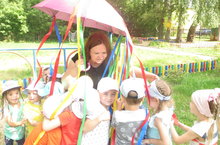 Хорошая погода сегодня. И хорошее настроение у наших детей. А когда еще интересная игра на прогулке, настроение еще лучше становится. Радость и веселье у малышей в процессе игры "Солнышко и дождик".