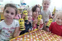 Вот таких пчелок смастерили дети средней группы вместе с воспитателем Миннуллиной Фиалкой Мавлютовной. А еще они будут мастерить домик-улей для них. Домик должен быть и у пчелок. Они приносят в него нектар.