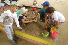 Любимая детская деятельность в летний период - игры с песком.