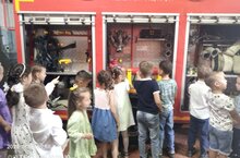 Благодаря экскурсии в пожарную часть, дети не только пополняют свой багаж знаний, но и знакомятся с основными причинами пожаров, учатся осторожному обращению с огнем и умению действовать в случае возникновения пожара. Дети старшей разновозрастной группы «Юлдызлар» 8 августа посетили пожарную часть. С огромным желанием и восхищением они рассматривали пожарные машины, аварийно – спасательное оборудование. Командир отделения показал ребятам бак, который заполняется водой, какими принадлежностями пользуются пожарные, показал пожарные рукава. Дети впервые увидели спасательные аппараты, которые огнеборцы используют в задымлённых местах.