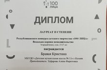 Республиканский конкурс детского творчества "100/лица" в номинации "вокальное искусство"