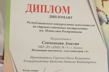 Поздравляем с первым дебютным выступлением на Республиканском конкурсе юных исполнителей на струнно-смычковых инструментах им.М.Ростроповича АМАЛИЮ СЕНЧЕНКОВУ, ставшую Дипломантом конкурса!