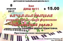 Приглашаем всех желающих на отчетный концерт учащихся отдела общего фортепиано "Волшебный рояль", который состоится 8 апреля в 15.00, по адресу ул. Академика Павлова, 25. -
