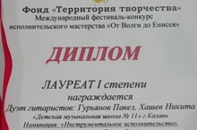 Наши поздравления дуэту гитаристов ГУРЬЯНОВ Павел—ХАШЕВ Никита, ставшему Лауреатом 1 степени Международного фестиваля-конкурса исполнительского мастерства «От Волги до Енисея».