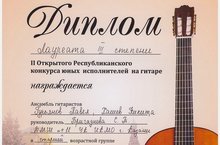 Ученики преподавателя класса гитары Бригадновой Светланы Тимофеевны порадовали своего педагога успешным выступлением на II Открытом Республиканском конкурсе юных исполнителей на гитаре: