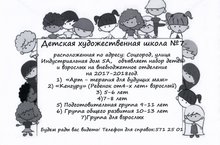 Детская художественная школа №7 расположенная по адресу: Соцгород, улица Индустриальная 5а, объявляет набор детей и взрослых на внебюджетное отделение на 2017-2018 год.