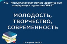XVI Республиканская научно-практическая конференция студентов СПО РТ «Молодость, творчество, современность» 22.04.2015