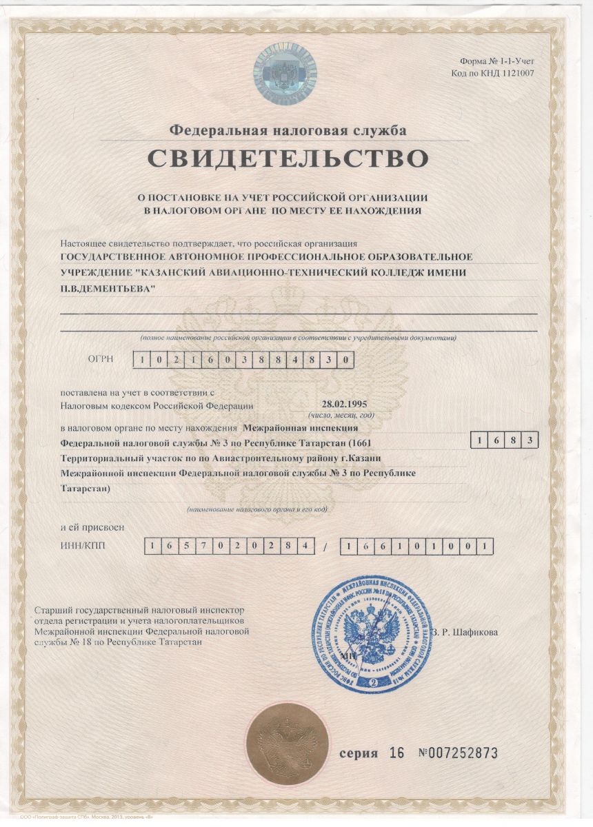 - Постановление о реорганизации государственного автономного профессионального образовательного учреждения "Казанский авиационно-технический колледж им П.В. Дементьева" и государственного автономного профессионального образовательного учреждения "Казанский машиностроительный техникум"