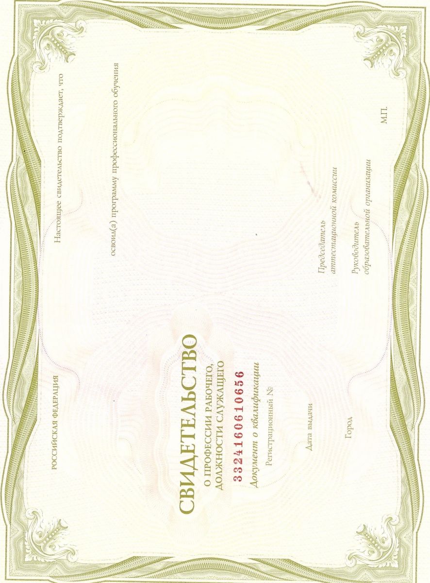 Форма документа выдаваемая по окончанию – Свидетельство о профессии рабочего, должности служащего установленного образца.