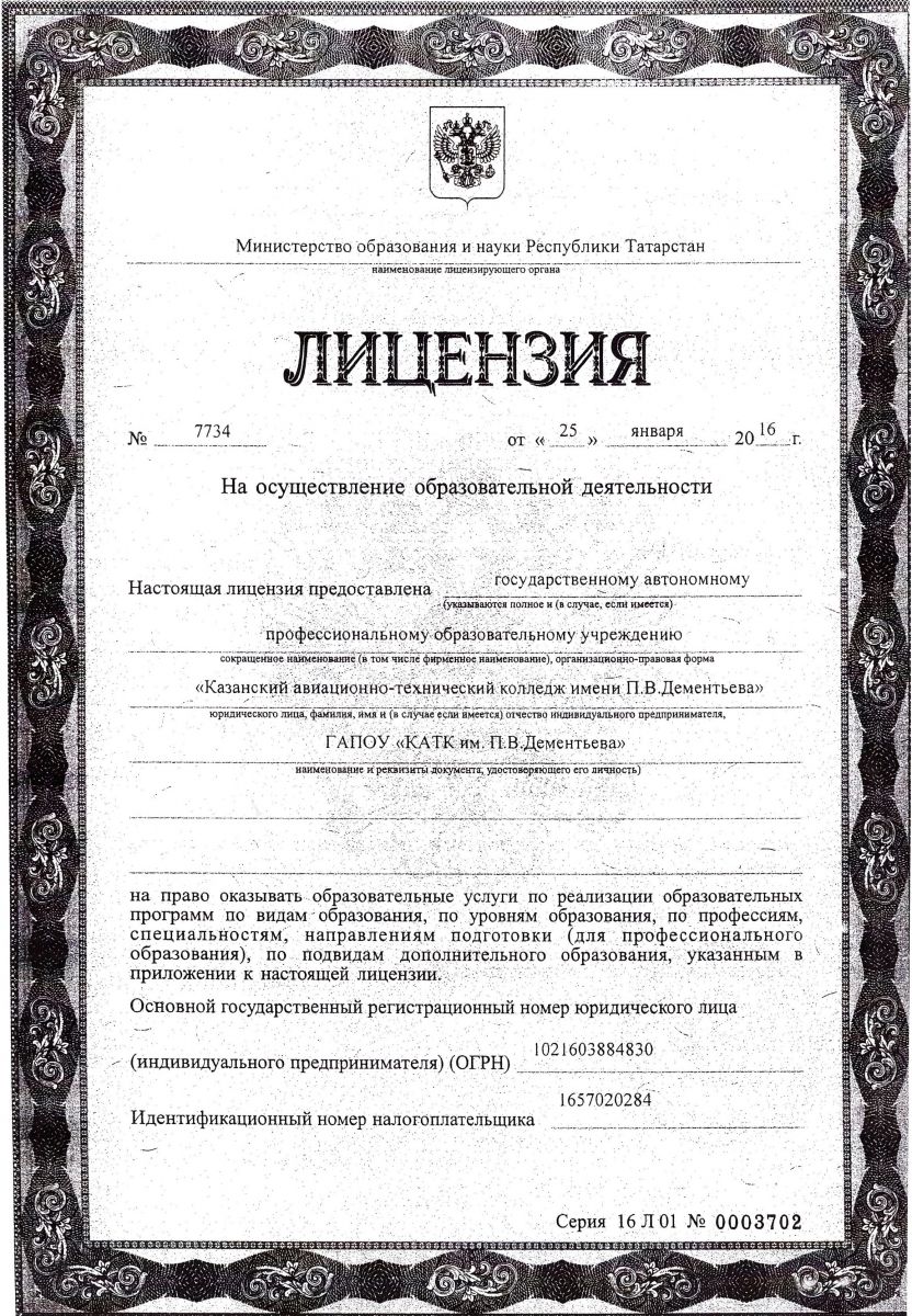 Государственное автономное профессиональное образовательное учреждение "Казанский авиационно-технический колледж имени П.В.Дементьева"\"П. В. Дементьев исемендәге Казан авиация-техник көллияте" дәүләт автоном һөнәри белем бирү учреждениесе"