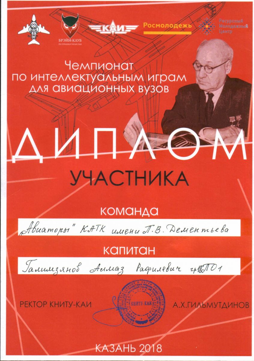 18 ноября 2018года студенты колледжа принимали участие во Всероссийском турнире «Чемпионат по интеллектуальным играм» на территории КАИ-ГРИНТ приуроченная к 130-летию А.Н.Туполева.