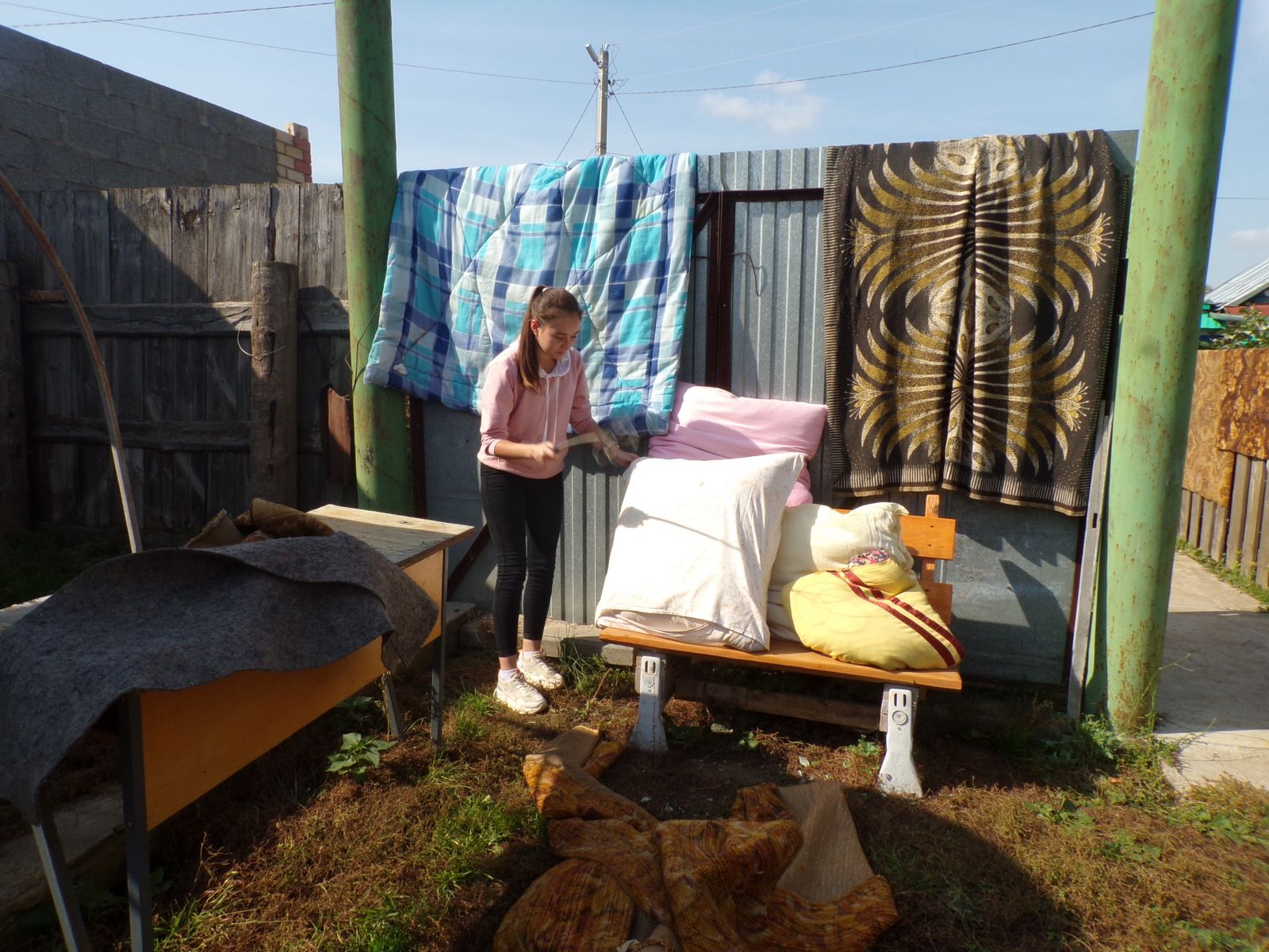 Опубликовано: 14.09.2019В рамках прохождения акции "Осенняя неделя добра" - эстафета добрых дел: оказание помощи одиноким людям. В этот теплый и солнечный осенний день студенты филиала навестили - труженицу тыла, проживающую в с. Ленино Кокушкино, – ветерана труда Камалееву Нагиму. Ребята оказали посильную помощь в уборке дома, участка. А также, вручили хозяйке сладкие гостинцы.
