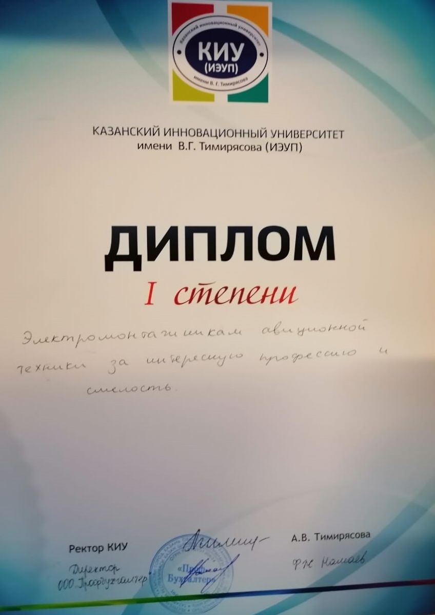 Опубликовано: 18.11.201918.11.2019 г. студенты группы 1802 приняли участие в деловой игре «Представление профессий», проходящей в Казанском инновационном университете. Деловая игра заключалась в представлении своей профессии, по которой студенты получают образование. Наши ребята представили специальность электромонтажник авиационной техники, подготовили презентацию и творческий номер.
