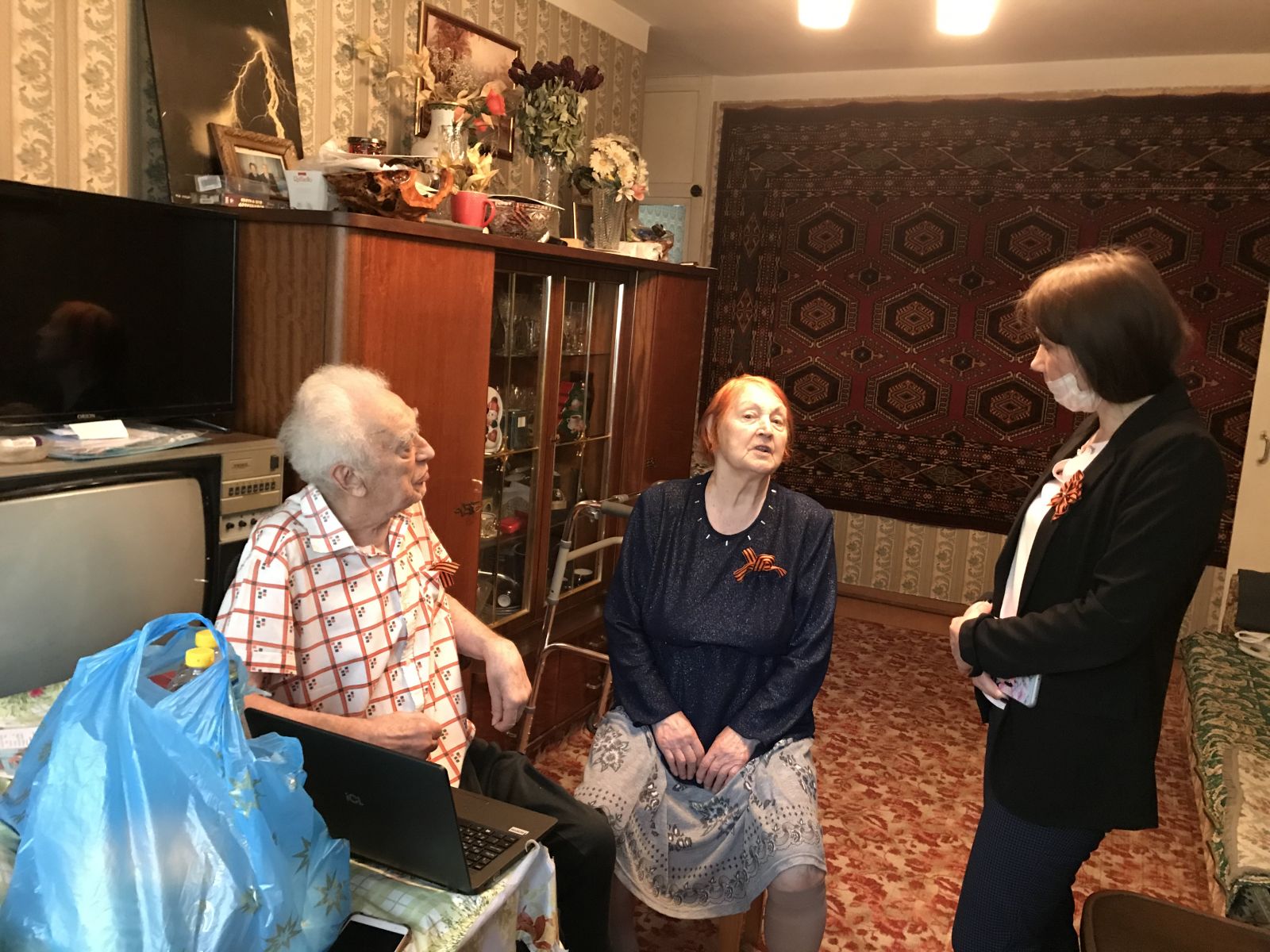 В рамках акции "Спасибо ветеранам! " заместитель директора по ВР Павлова И. Г. и педагог Хазиева Я. Р. посетили ветеранов, вручили подарки. Волонтеры поздравили ветеранов по видеосвязи и выразили благодарность за мирное небо, за их труд. Вечная благодарность и непомерная слава погибшим, а также ныне живущим ветеранам и труженикам тыла! Благодаря этим людям мы не знаем этого страшного слова – «война»; живем на свободной земле и под мирным небом. Спасибо Вам!