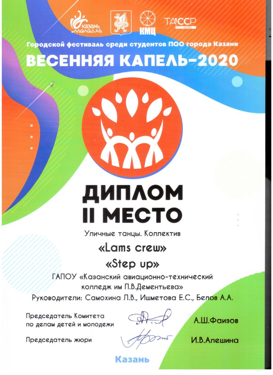 Наша творческая команда колледжа заняла 3 место в общем зачете среди студентов образовательных учреждений СПО г.Казани!
