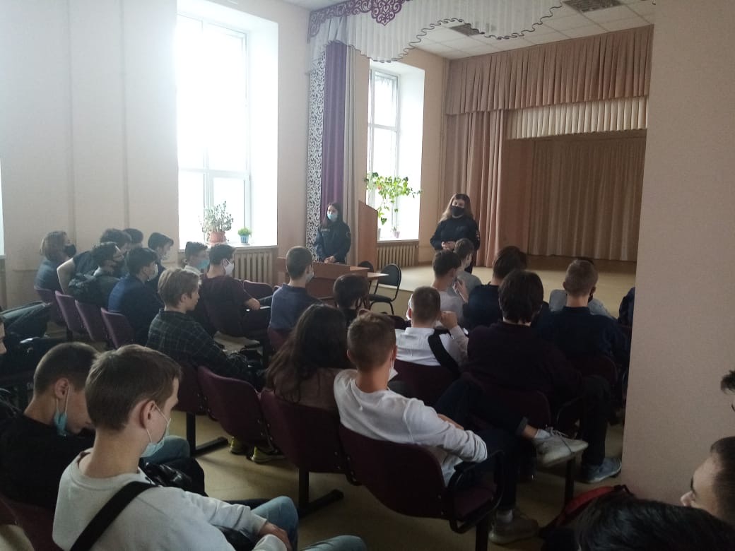 Инспектор рассказала студентам об уголовной и административной ответственности за совершение преступлений и правонарушений, в том числе: незаконное распространение и употребление наркотических веществ или их аналогов, курение, распитие спиртных напитков, нахождение в общественных местах с 22.00 до 6 утра без сопровождения взрослых и многое другое.