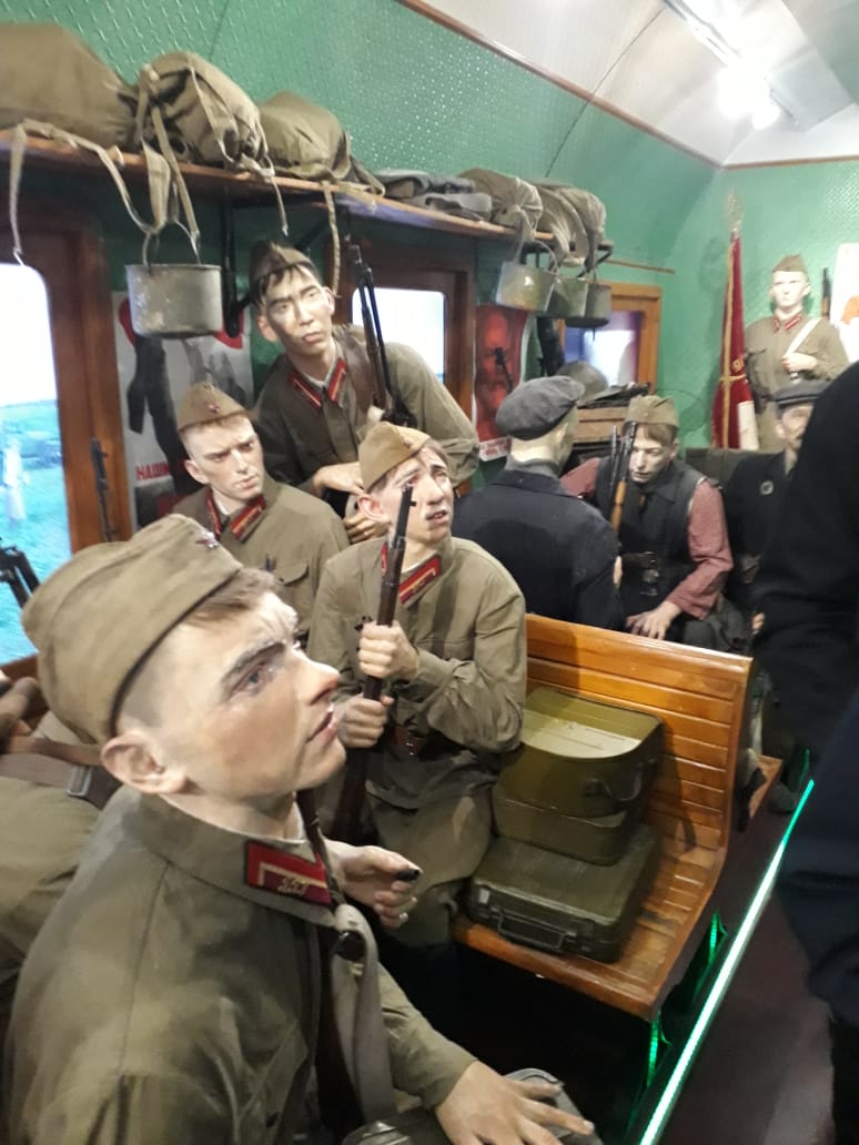Ни в одном музее страны нет подобного количества многофигурных скульптурных композиций, как в «Поезде Победы». Выставка размещена в тематических вагонах, иллюстрирующих мирное время и последние часы перед войной, военные будни страны.