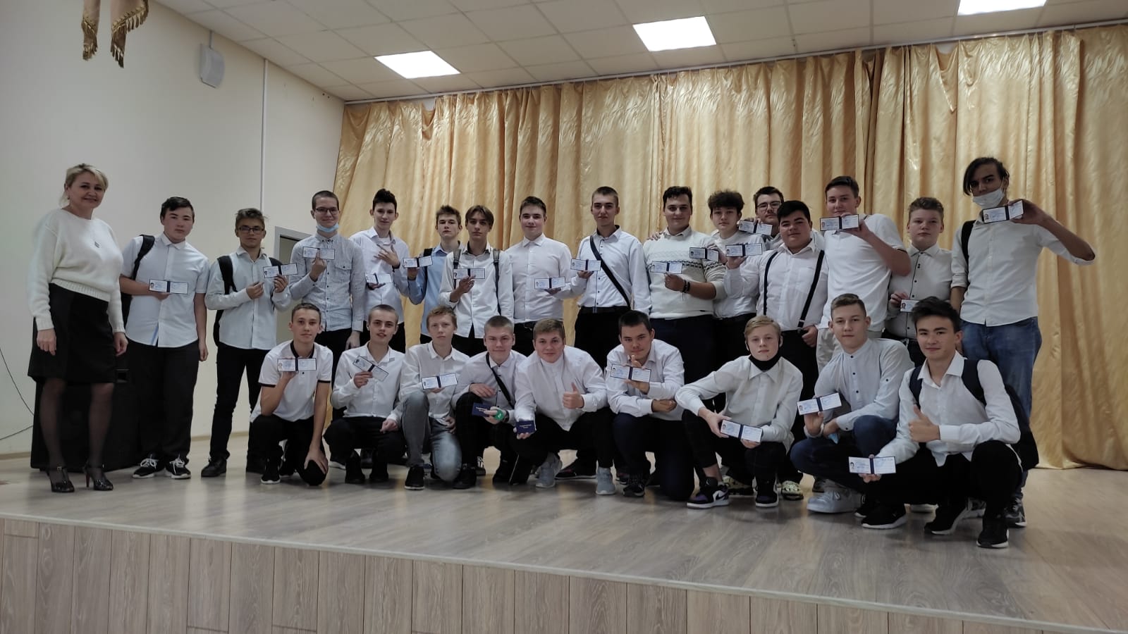 Ребята представили презентацию своей группы, показали творческие номера и в заключении праздника им вручены студенческие билеты. Общее фото на память – и ты студент КАТК!