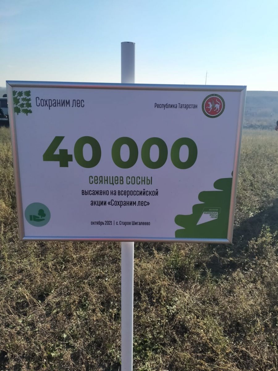 Опубликовано: 09.10.20219 октября 2021 г. в Пестречинском районе в рамках национального проекта «Экология» прошла акция «Сохраним лес!». Сохраним лес – ежегодная всероссийская акция по восстановлению лесов. Одной из площадок с массовыми высадками деревьев стало село Старое Шигалеево! В ходе акции высадили 40 тысяч саженцев сосны, ели и лиственницы на площади более 15 гектаров. Участие в масштабной высадке деревьев приняли около 600 человек.