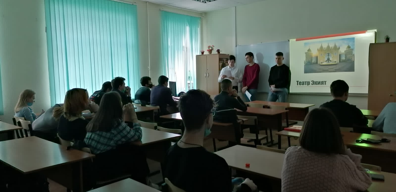Опубликовано: 19.10.202119 октября в группе 20Т2 был проведён классный час на тему: "Театры города Казани". Выступали студенты: Бабутаев А.Р., Галявиев Р.Р., Сайфуллин Р.Е. Ребята подготовили доклад с презентацией, а также более подробно ознакомились с театрами "Экият"," Юного зрителя" , Театр оперы и балета им. М.Джалиля.