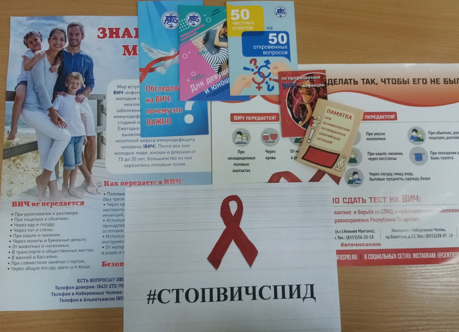 Также, активисты раздали всем желающим информационные буклеты с данной тематикой предоставленные ГАУЗ «Республиканский центр по профилактике и борьбе со СПИД и инфекционными заболеваниями» МЗ РТ».