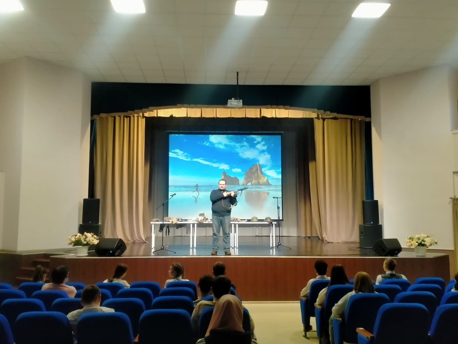 Опубликовано: 10.12.202110 декабря студенты филиала колледжа посетили выездной национальный музей. Для участников мероприятия был представлен показ мод татарского, русского, кряшенского костюмов из фонда краеведческого музея. Национальный музей, в лице Хаббарова Владислава Вениаминовича – заведующий отделом научной реконструкции Национального музея, представил выставку «Что носили, чем сражались», на которой познакомил участников с организацией, вооружением и повседневной жизни армии во времена ВОВ.
