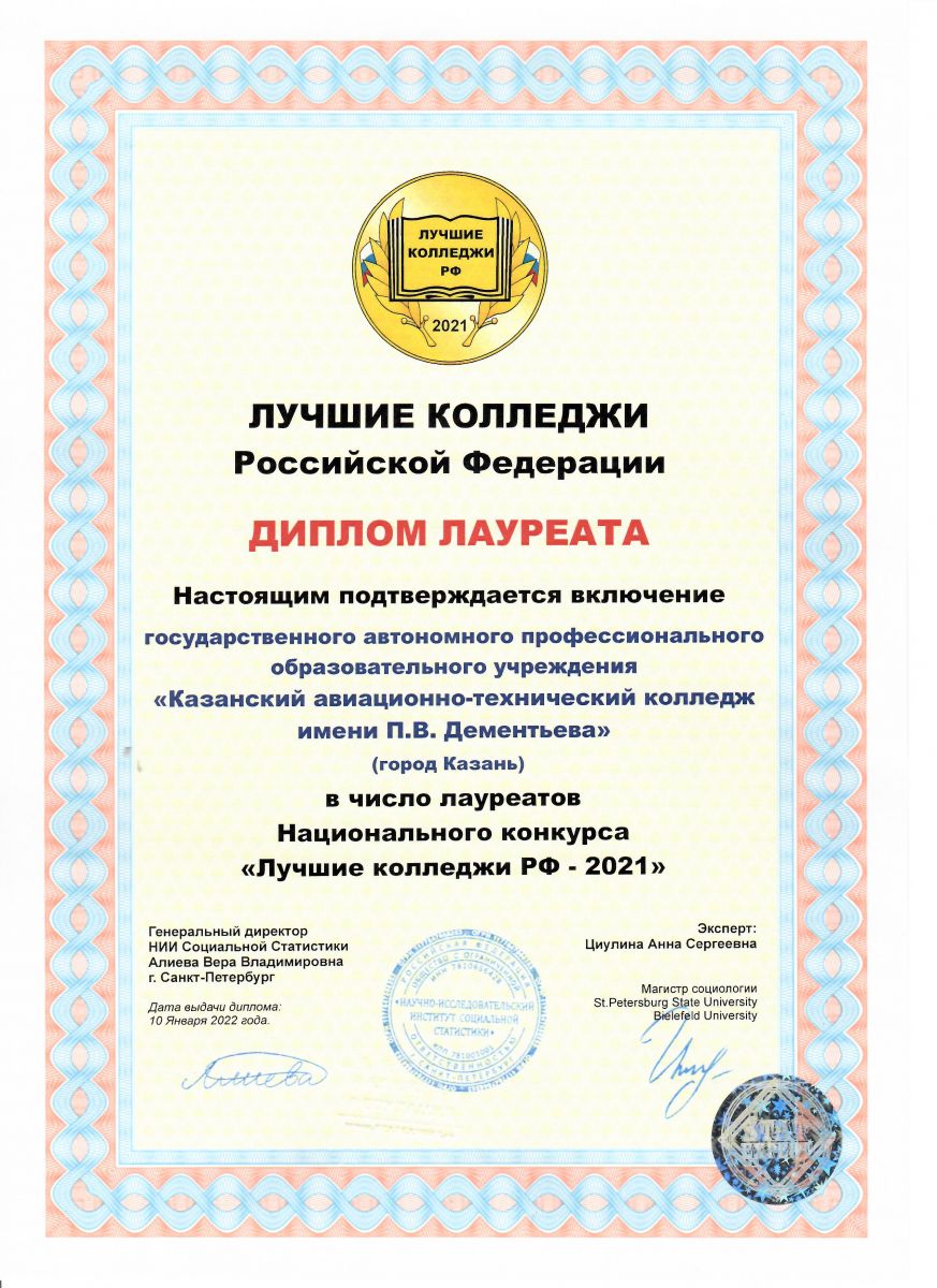 стал лауреатом Национального конкурса «Лучшие колледжи Российской Федерации-2021». Высокий уровень профессионализма преподавателей колледжа, качество подготовки выпускников дает нам право с честью нести это звание.