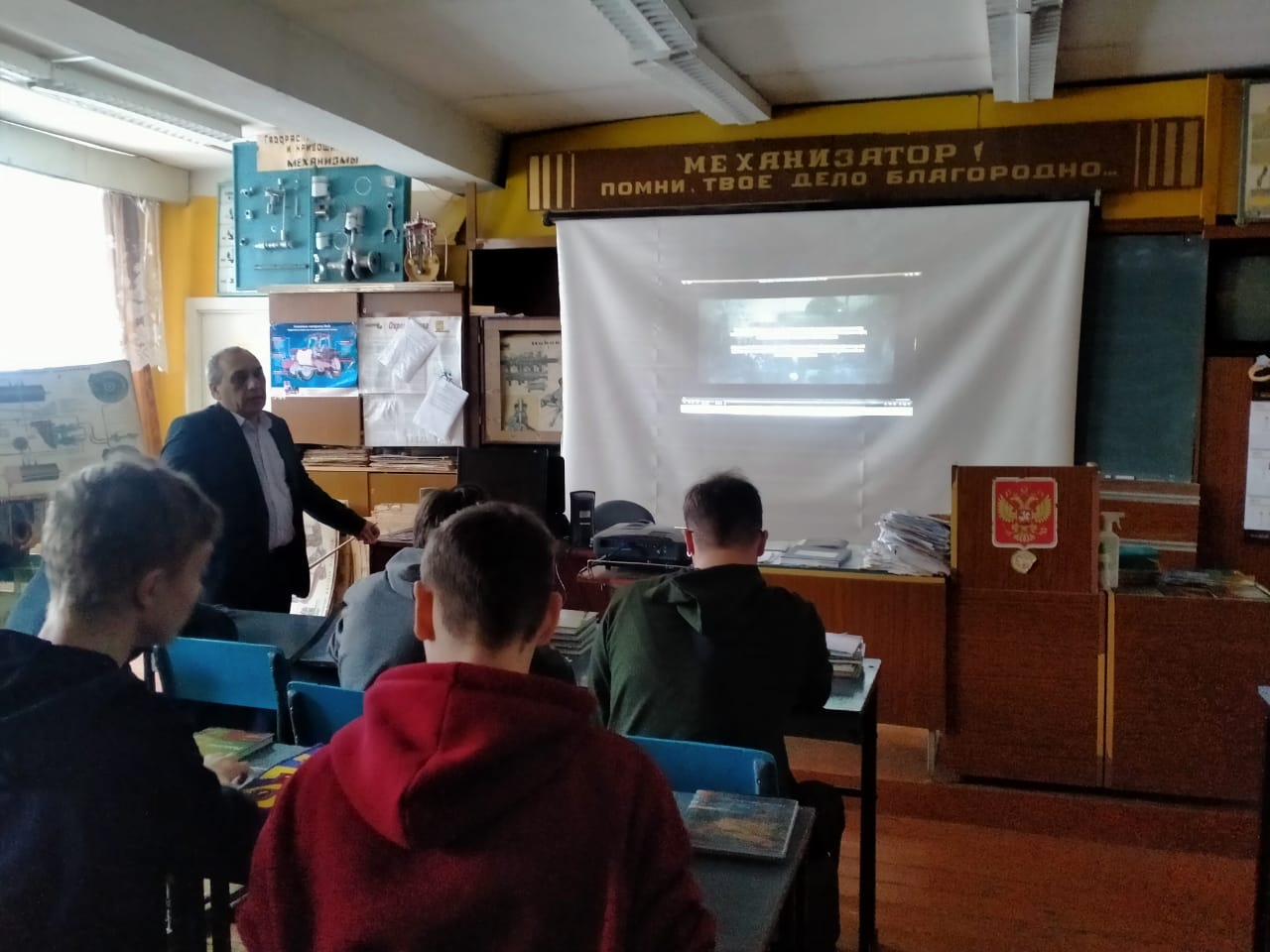 Цель - привлечение молодежи к истории военного времени, формирование художественного и эстетического вкуса учащихся, развитие творческого потенциала; передать молодежи те патриотические ценности, которые заложены в фильмах прошлых лет; показать студентам великий подвиг и героизм советского народа во время Великой Отечественной войны. Организовал мероприятие - Сулейманов Р.А., кл.руководитель.