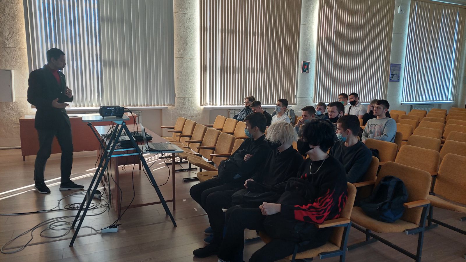 Опубликовано: 11.03.202211 марта провели интерактивную встречу студентов 2-го курса с представителем общественной организации «Общее дело». Говорили, смотрели видео ролики потом их совместно обсуждали и делали выводы. Тема встречи «Никотин – секреты манипуляции. Матерщина на Руси».