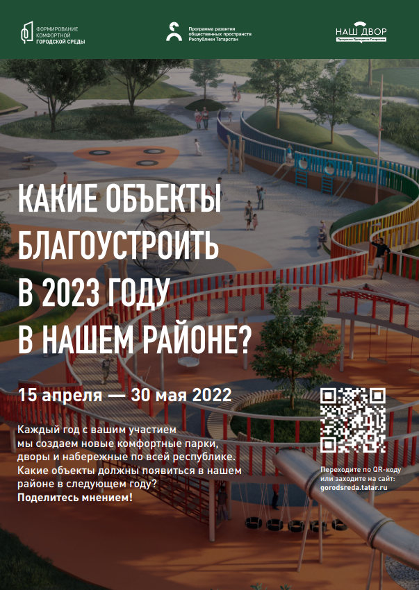 Опубликовано: 18.05.2022С 15 апреля по 30 мая 2022 года в рамках реализации федерального проекта «Формирование комфортной городской среды» проходит общероссийское онлайн-голосование по выбору общественных территорий для благоустройства в 2023 году. К участию приглашаются граждане Российской Федерации в возрасте от 14 лет.