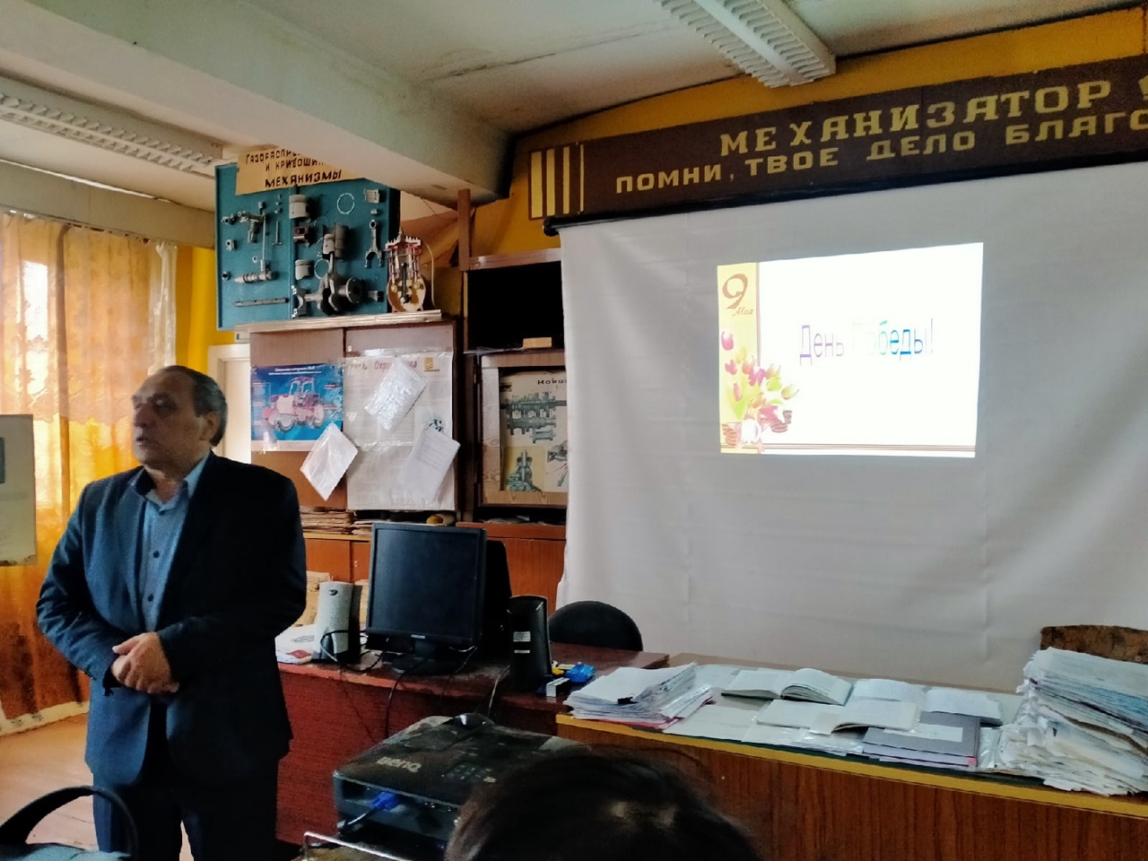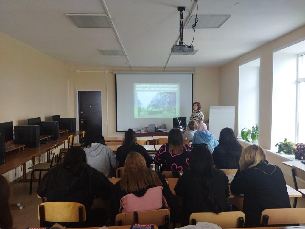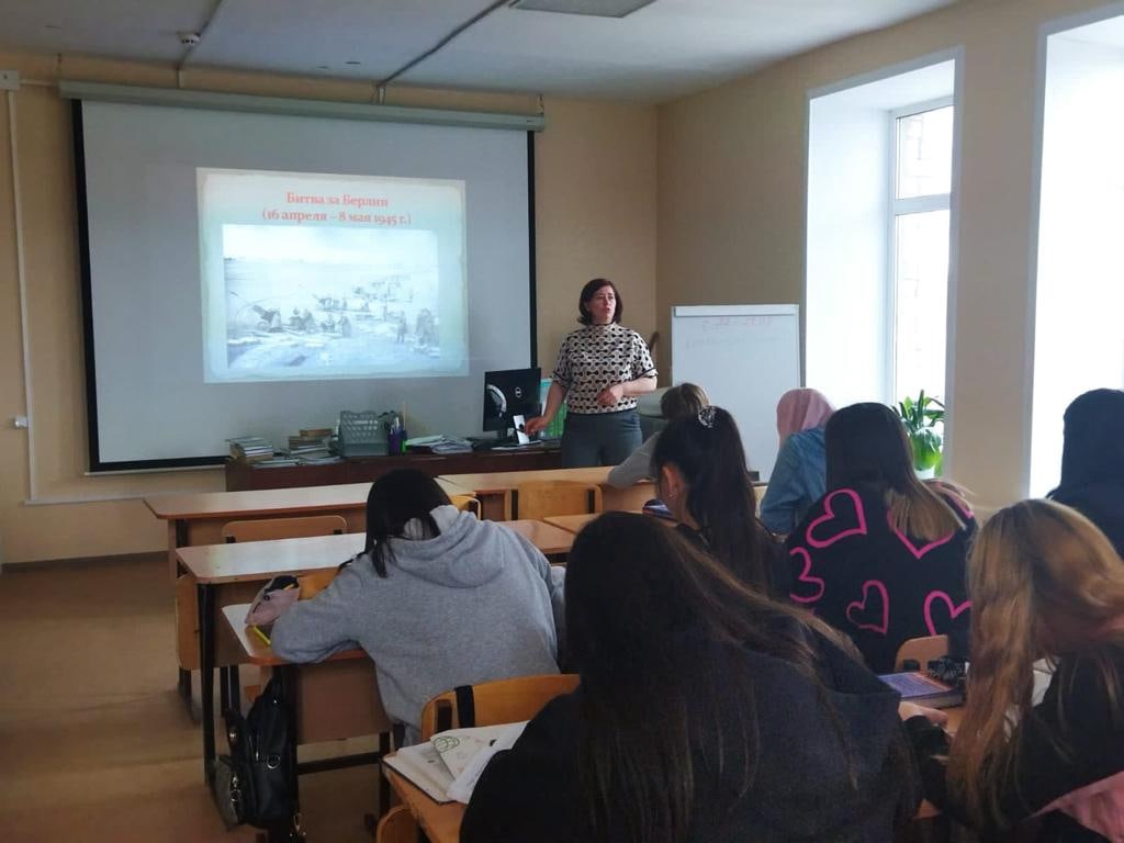Опубликовано: 25.04.2022Для студентов 1-3 курсов колледжа были организованы классные часы «От имени сердца, от имени жизни повторяю. Вечная Слава Героям!». Целью мероприятия было познакомить студентов с историческими событиями нашей Родины, воспитание гражданского долга, патриотизма, уважительного отношения к ветеранам Великой Отечественной войны.