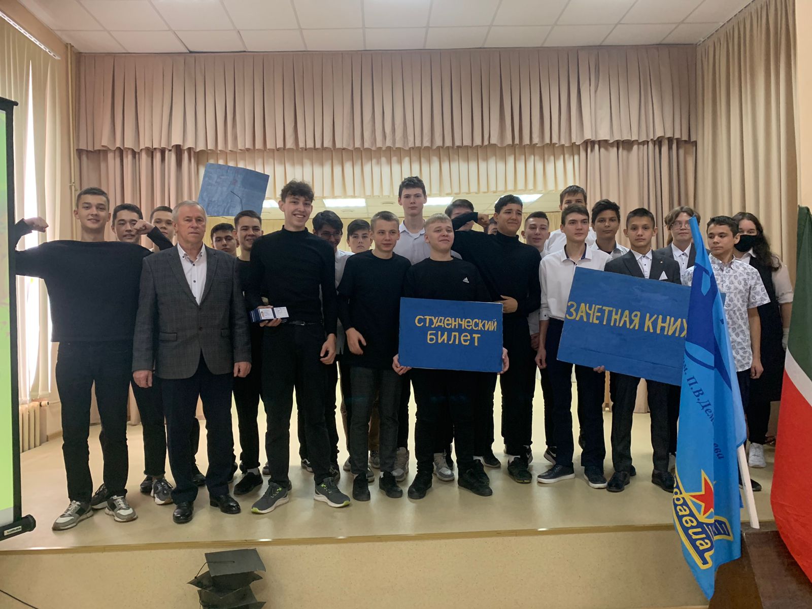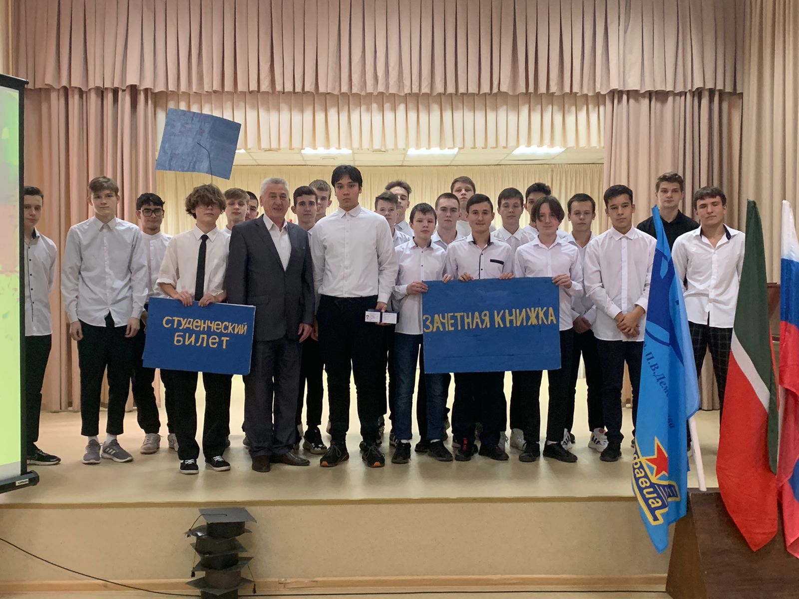 Праздничный концерт завершился вручением первокурсникам символов студенчества – студенческого билета. Их ребятам передали классные руководители Насыртдинов Р.Ф., Чигвинцев Е.И., Хазиева Я.Р. Теперь ребята могут с уверенностью называть себя студентами Казанского авиационно-технического колледжа имени П.В.Дементьева.